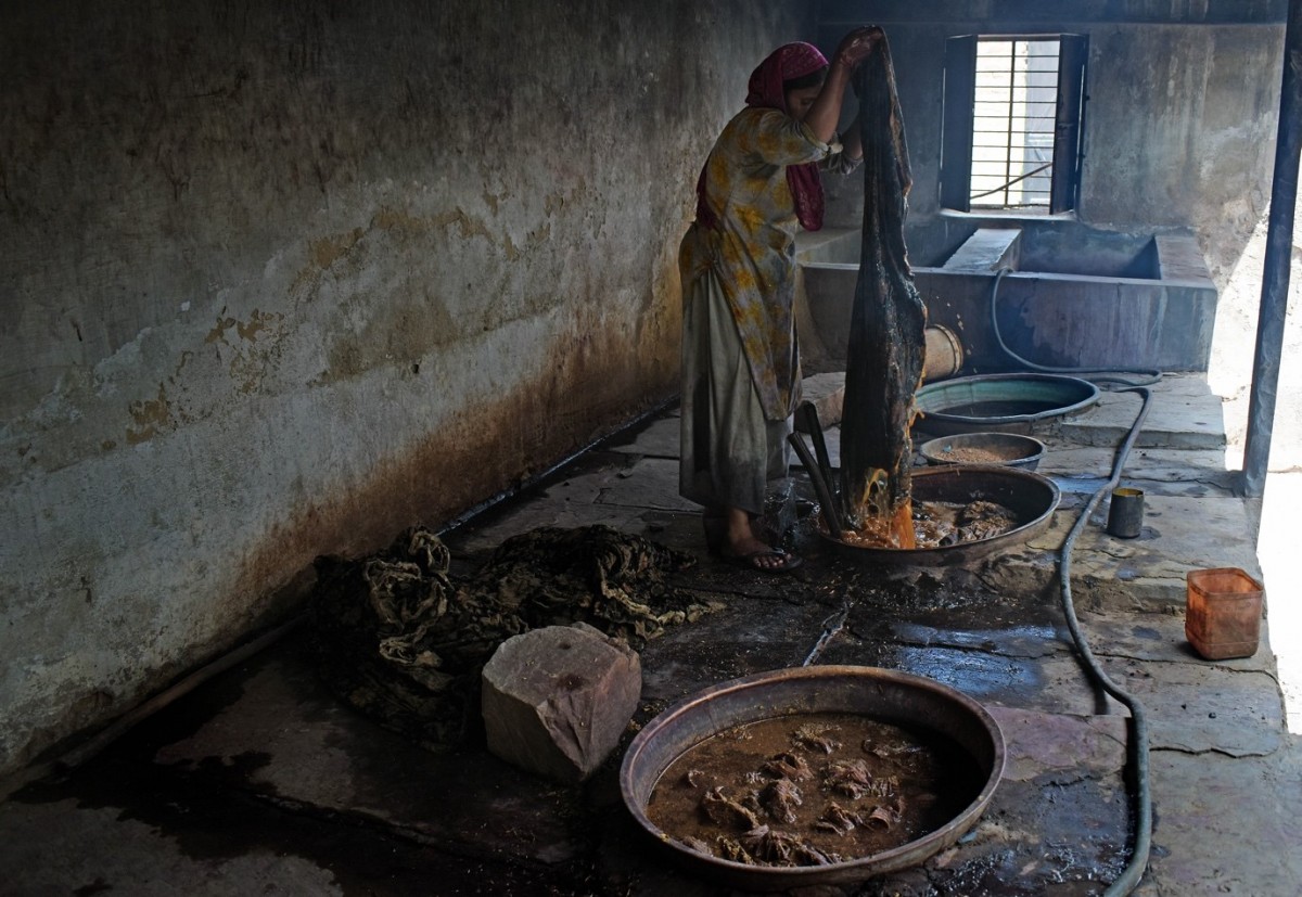 A woman dyeing cotton cloths in Bagru, Rajasthan. Photo: Jignesh Mistry