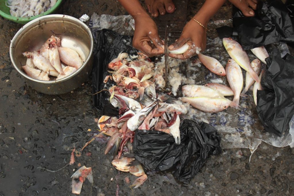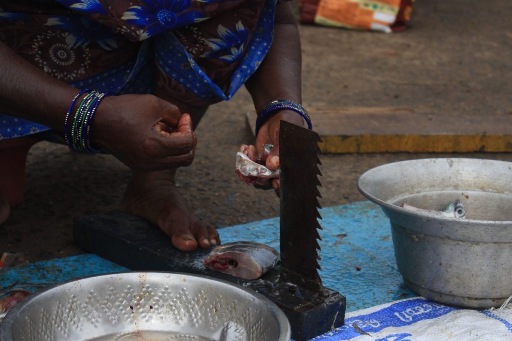 Fish being butchered at Kasimedu. Credit: Krithika Srinivasan
