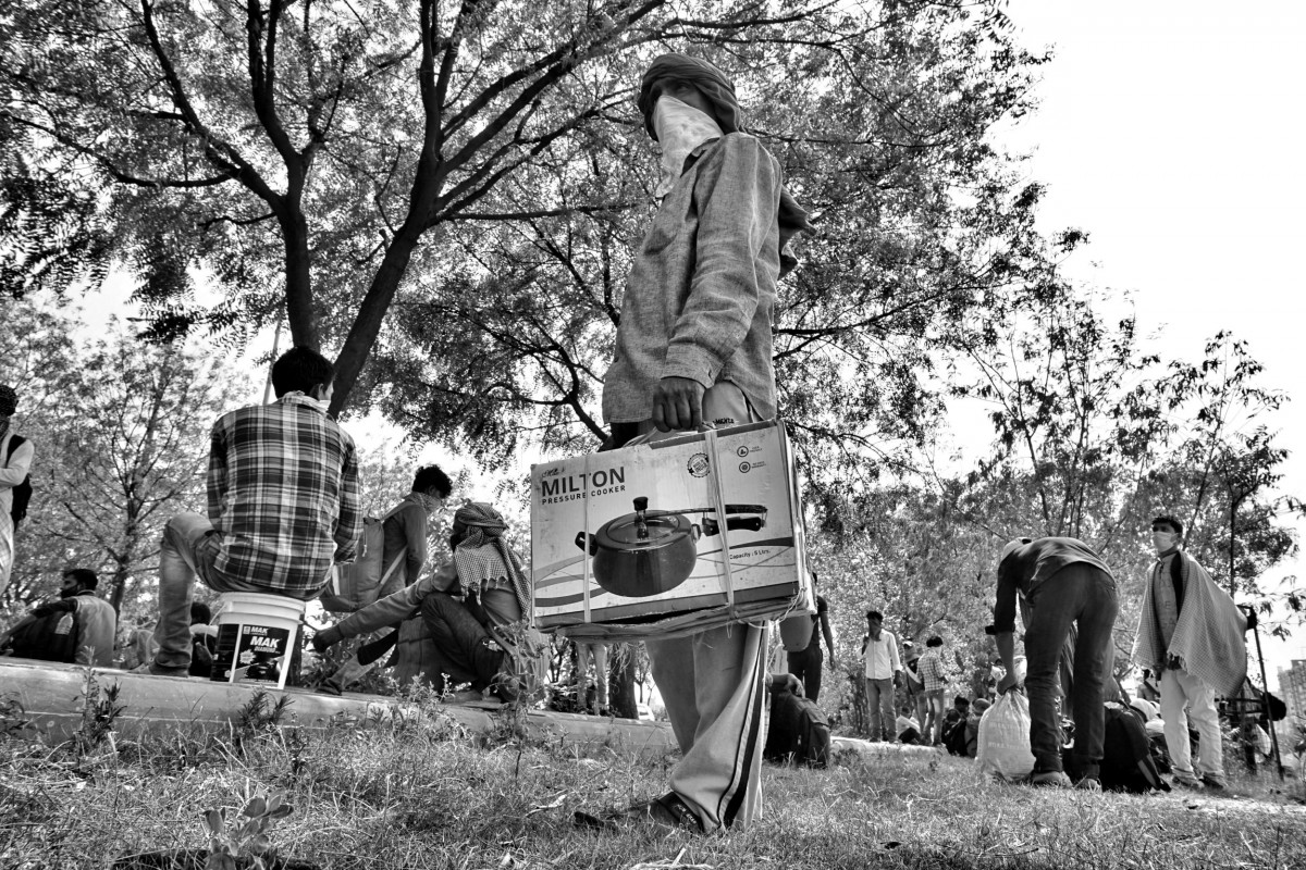 Shambu is from Bihar. He’s exhausted, but happy that he can gift his wife a pressure cooker which be bought a few days before the lockdown. He says his wife has been asking for this for a long time.
