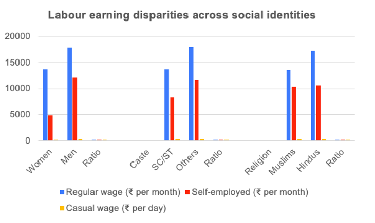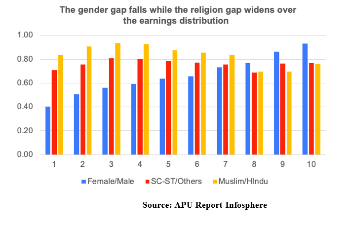 The report found that significant earnings gaps exist in terms of gender, caste and religion among different social groups.