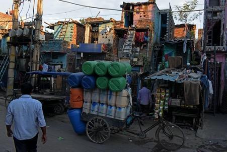 An overloaded rickshaw hauling wares in the jhuggi. Photo: Jignesh Mistry.