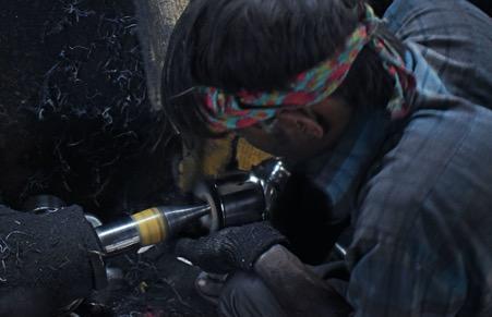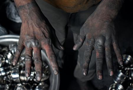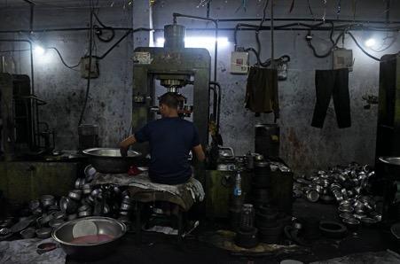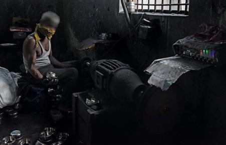 Workers press, cut and polish steel to create tumblers, bowls and plates. Overlooking safety concerns, they operate polishing, rolling and cutting machines using a ‘naked hand’; sans protective gear.