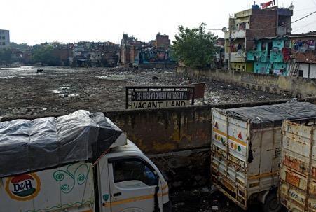 A plot of land in the jhuggi which has been cleared out for contruction. Photo: Jignesh Mistry.