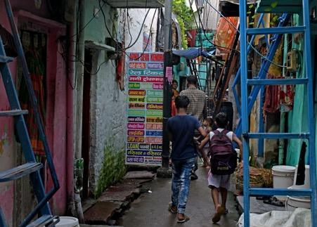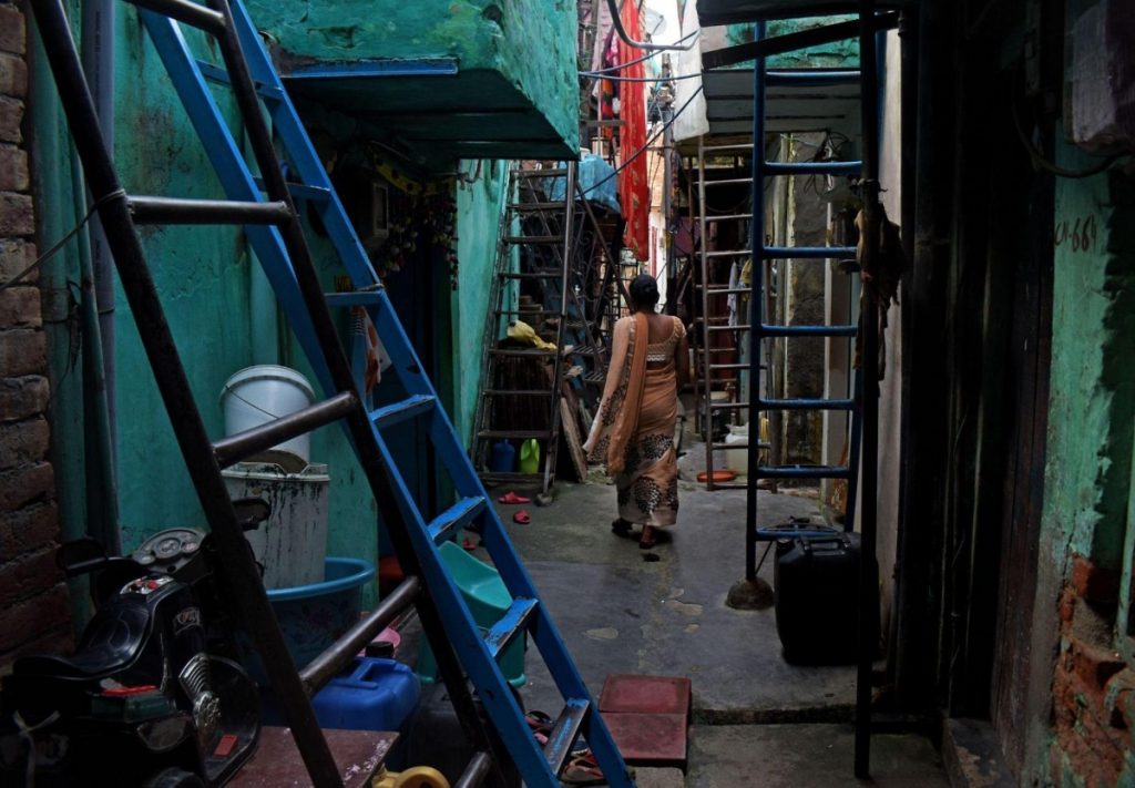 A woman walks through a cramped slum alley. Photo: Jignesh Mistry.