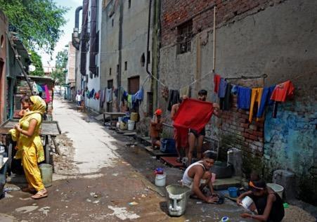 Thousands of jhuggis have been built around the major industrial areas of Wazirpur and Badli. Shacks line the streets of these slum areas, which can only be reached by marching in single file past leaking sewers.