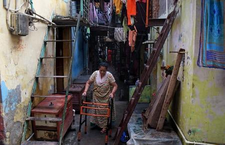 A woman with a walker making her way through the alley. Photo: Jignesh Mistry.
