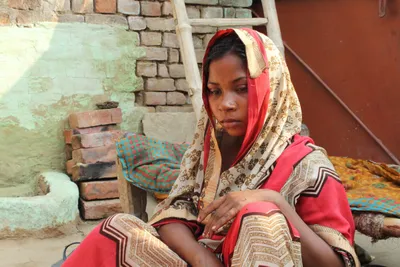 Vikas’s house is just a stone’s throw away from Dinesh’s. Vikas’s wife Anju Devi, 20, is seven months pregnant. She does not know how she will manage without him.