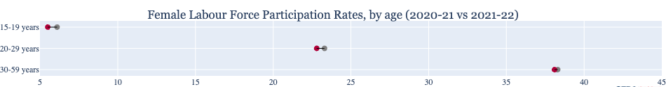 These numbers reflect the labour force participation rate (LFPR) based on current weekly status (CWS). An individual is considered to be a part of the labour force by current weekly status if they were either employed (or looking for work (unemployed)) for at least one hour on at least one day in the week preceding the survey.