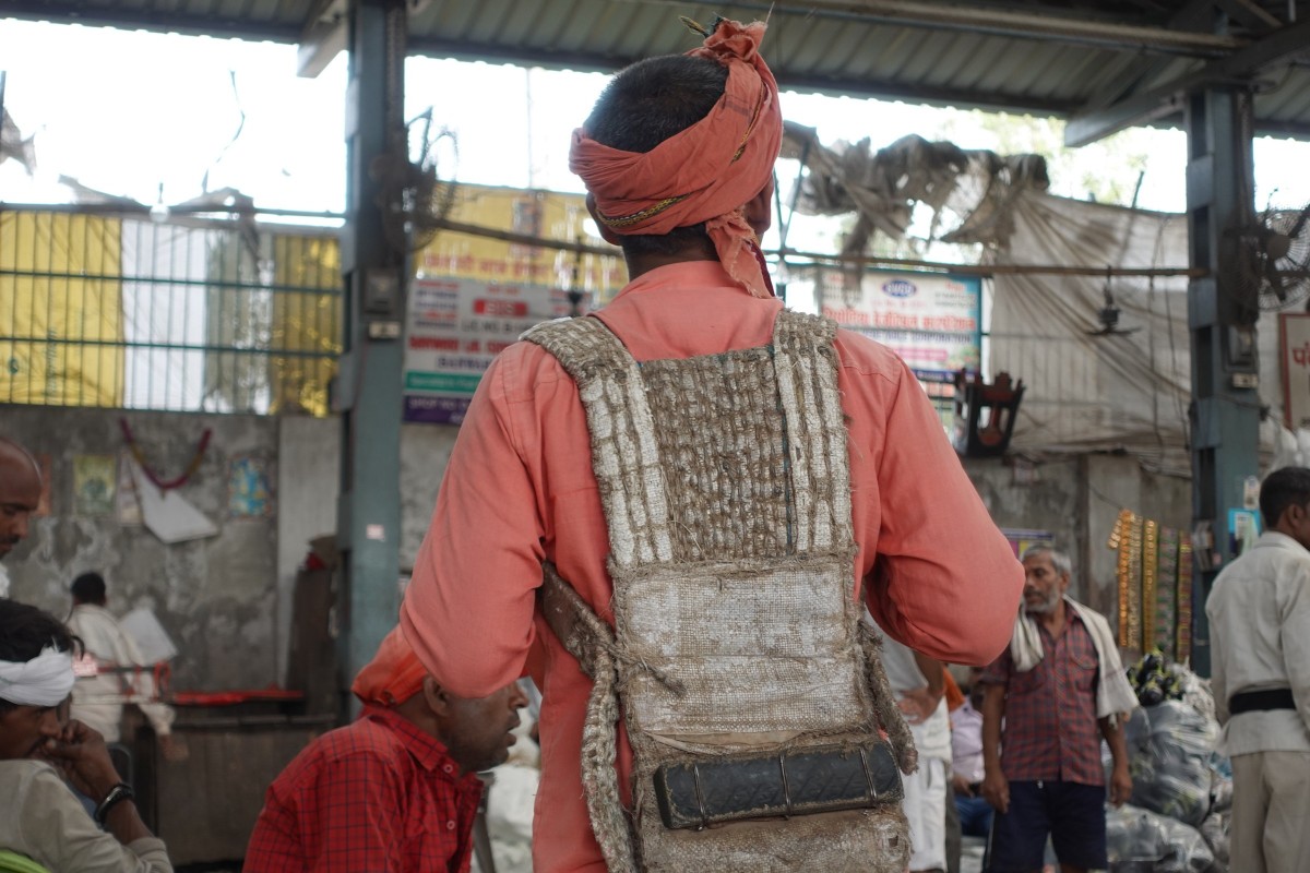 Most palledar workers who carry loads of 50 to even 90 kg on their backs wore a pitthoo hand-made from pieces of gunny bags as protection. Without it, the heavy loads lifted through the day would peel skin off their backs, they said.