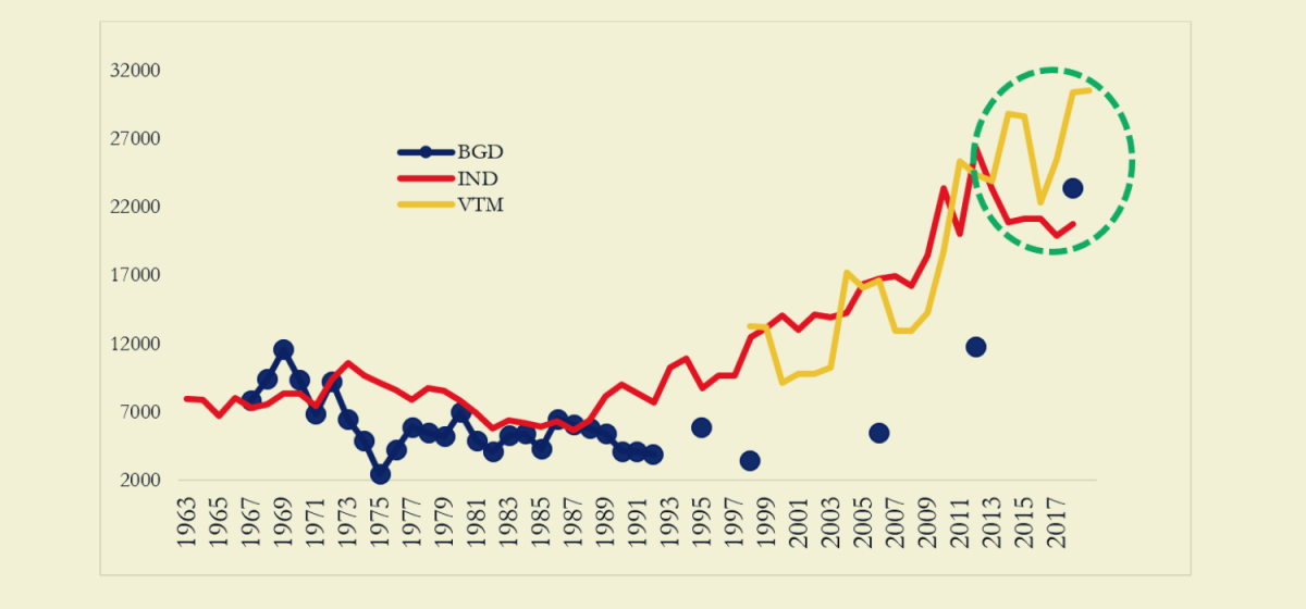 Figure 3. Per Worker GVA in man-made textile (Constant PPP $)