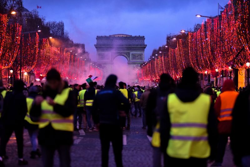 On December 10, after three weeks of protests, President Macron announced a series of measures meant to appease the protesters, including a raise of 100 euros of the minimum wage and a tax reduction for pensioners receiving less than 2,000 euros a month, an announcement which followed the cancellation of the ‘carbon tax’ increase a few days earlier. While these measures failed to content many Gilets Jaunes, they (momentarily?) led the movement to subside. On Saturday December 15, the official number of protesters across the country fell to 66,000, against 126,000 on December 8 and 282,000 on November 17. On the Champs-Elysées, a few thousand Gilets Jaunes fought the bitter cold and tried to convince themselves that the movement would resume after Christmas and the New Year's celebrations.