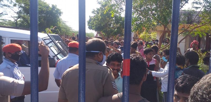 Migrant workers in Koodankulam being prevented from leaving. Photo: Special Arrangement