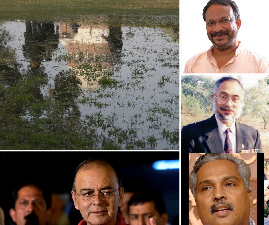 Clockwise, from top right: The Aadhar-PAN petitioners Bezwada Wilson, Maj Gen (retd.) S.G. Vombatkere and CPI leader Binoy Viswam; finance minister Arun Jaitley, Supreme Court of India. Credit: Magsaysay Foundation, Facebook,YouTube, PTI, Shome Basu