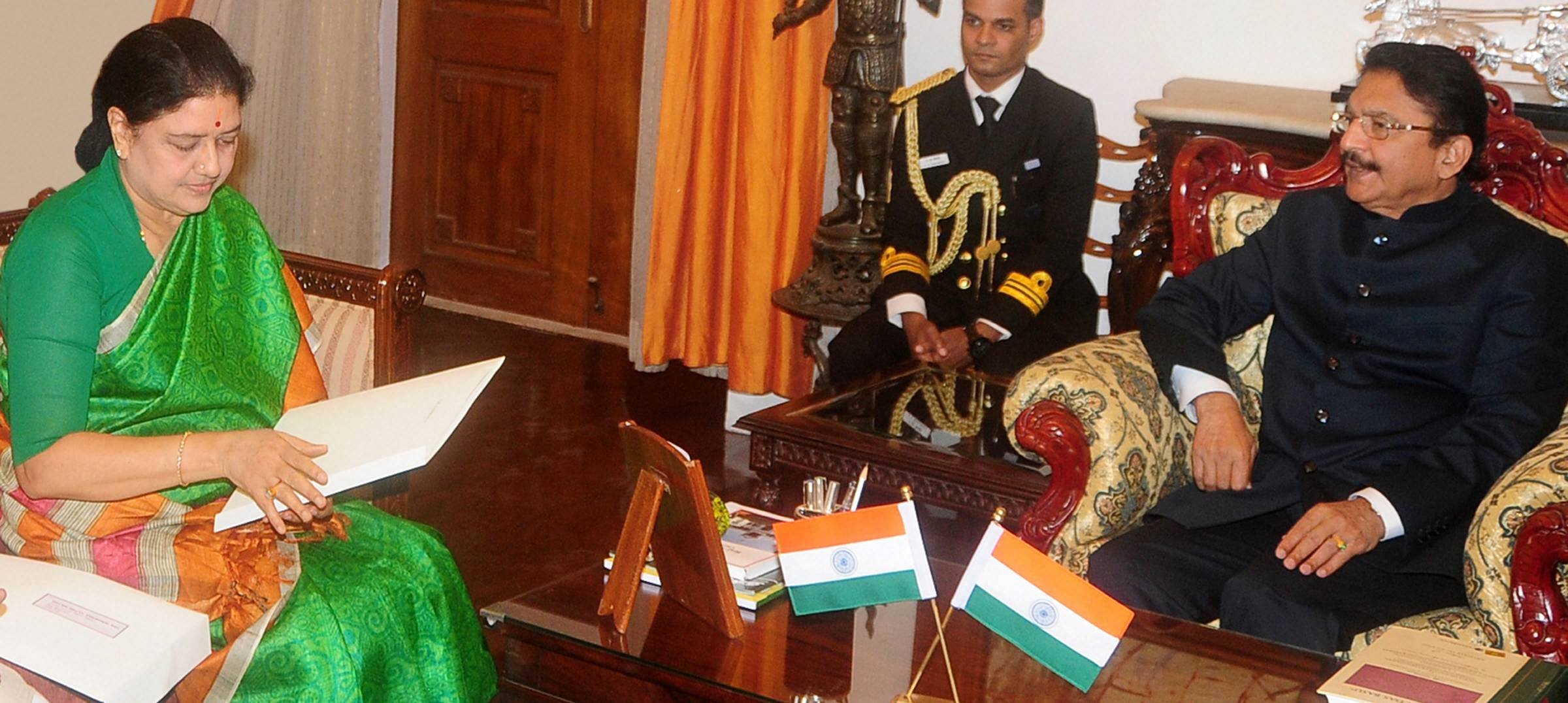 Chennai: AIADMK General Secretary V.K. Sasikala during the meeting with Tamil Nadu Governor CH Vidyasagar Rao at Raj Bhavan in Chennai on Thursday, February 9. Credit: PTI