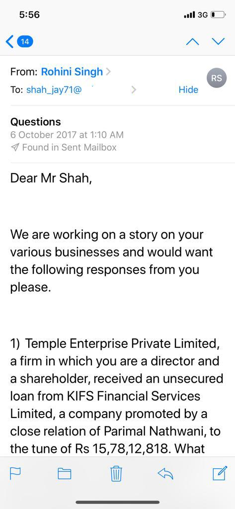 This was a non-sequitur in the instant case since the story on Shah's business affairs had been published on October 8, 2017, two days after questions had been sent to him and his replies were not only reflected fully in the story but published separately as well.