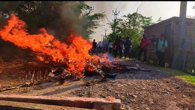 This morning, harvested grains stored at the newly appointed Panchayat Samiti chief Haladhar Ari's house was set on fire.