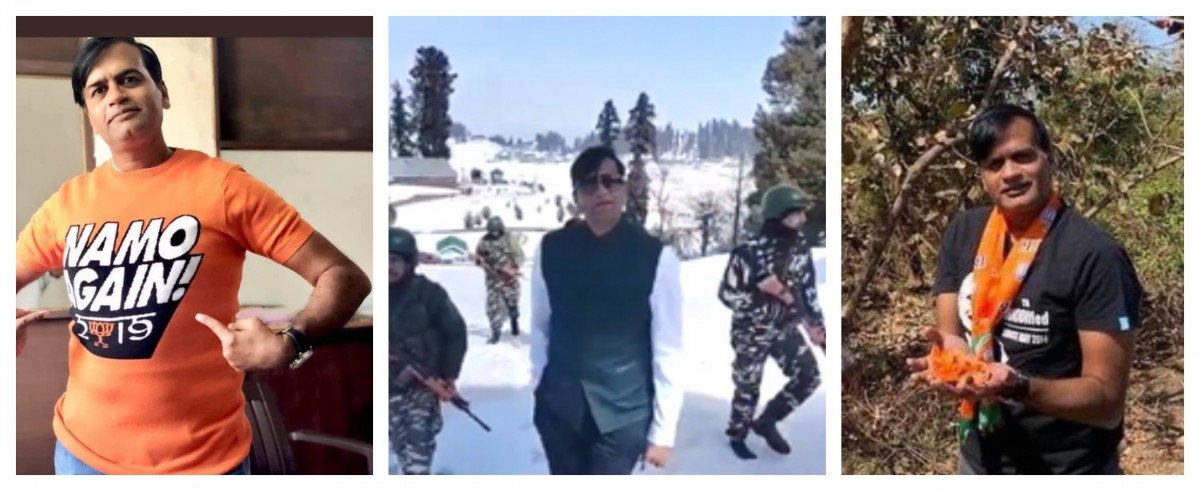 Kiran Patel on different occasions. The picture in centre is when he was in Kashmir with Z+ security.