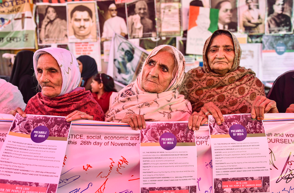 Women during a demonstration against CAA, NRC and NPR at Shaheen Bagh in New Delhi. Photo: PTI/Files