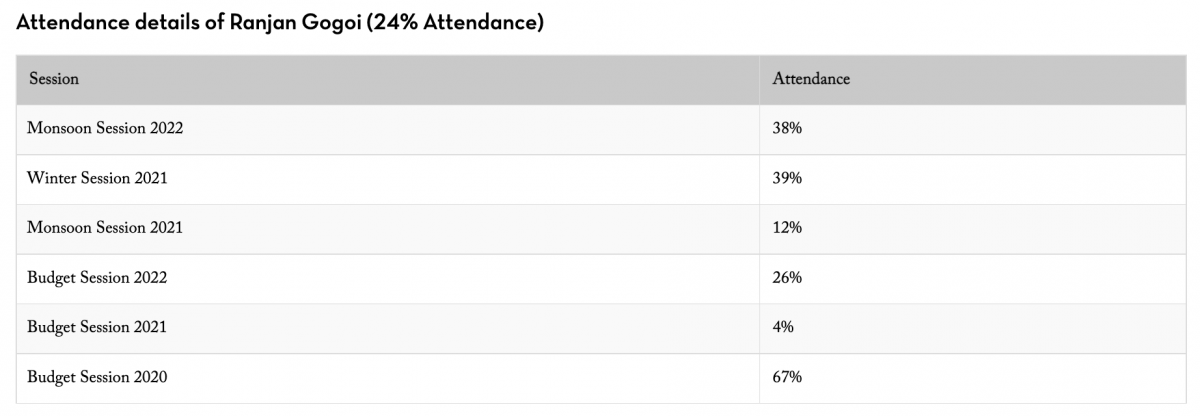 Ranjan Gogoi's record as a parliamentarian, March 2020-December 2022. Source: PRS