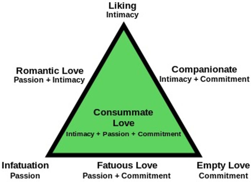 Passion, Intimacy, Commitment: Sternberg's triangular theory of love is based on these three pillars. Credit: Wikimedia Commons