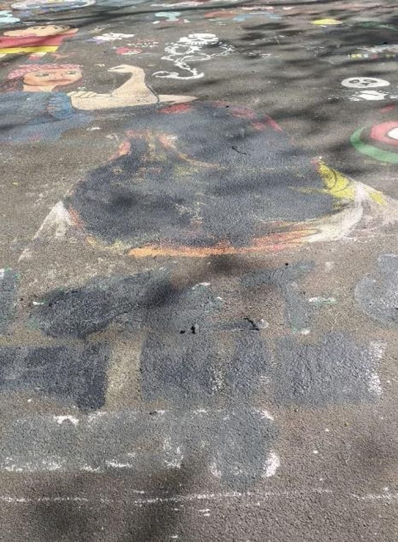 Defaced and blackened painting on the floor. Photo by special arrangement.