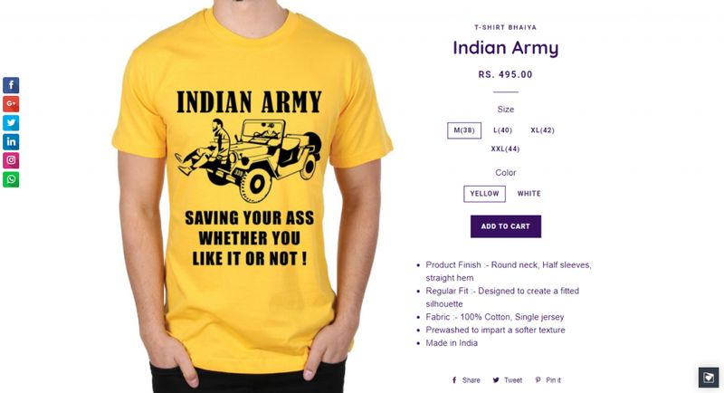 Bagga knows that indecency sells in India. Earlier, his enterprise 'T-shirt bhaiya' was in the eye of a storm when he sold a t-shirt with Farooq Ahmad Dar's helpless effigy printed on it. Dar, a Kashmiri civilian, was tied as a 'human shield' on a military jeep by Major Leetul Gogoi in Kashmir.