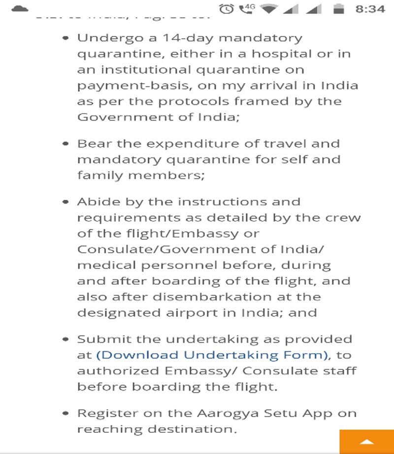 Instructions to be followed by all evacuees, as mentioned on the registration form from the Indian Embassy, Washington DC. Screenshot by: Pujarinee Mitra