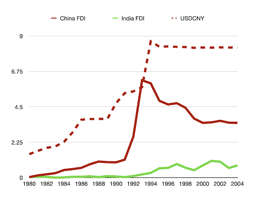 What happened to FDI in China compared to India during this period? The graphs below tell the story.