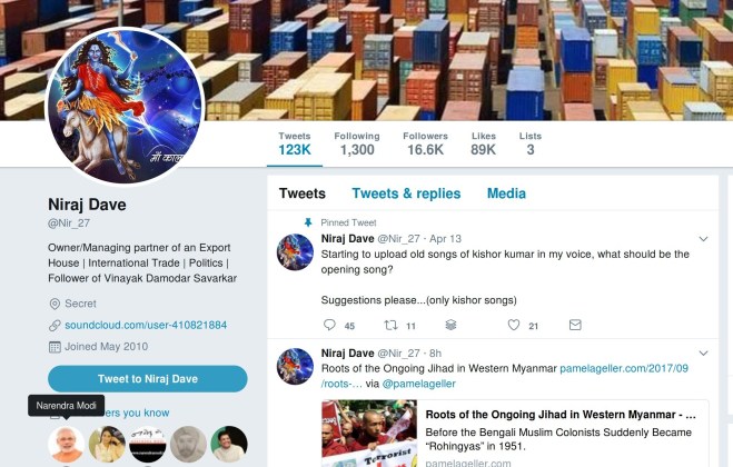 We looked up the Nir_27 Twitter profile and it is followed by none other than the prime minister of India.