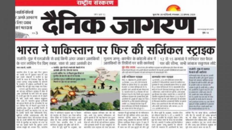 The lead story in the Tuesday, August 22, edition of Dainik Jagran had the headline: 'New Surgical Strike by Indian Forces: Terror Camps Targeted Beyond the Border.'