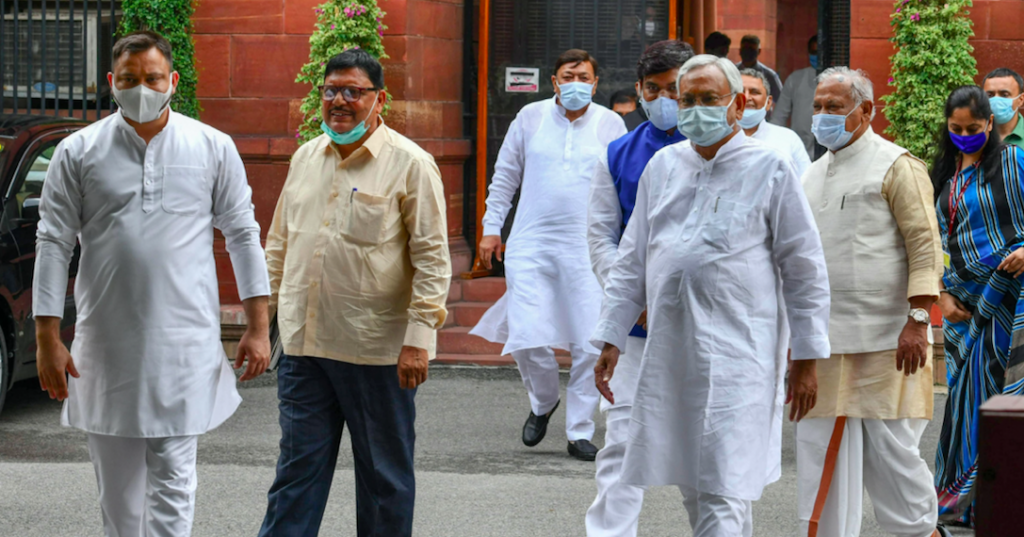 Bihar CM Nitish Kumar, RJD leader Tejashwi Yadav, HAM president Jitan Ram Manjhi and other leaders after a meeting with Prime Minister Narendra Modi over caste census in New Delhi, August 23, 2021. Photo: PTI