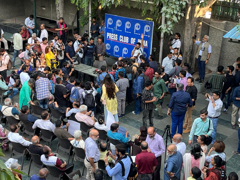 Journalists at the Press Club of India, New Delhi, at the release of the joint letter to CJI Chandrachud. Photo: The Wire.