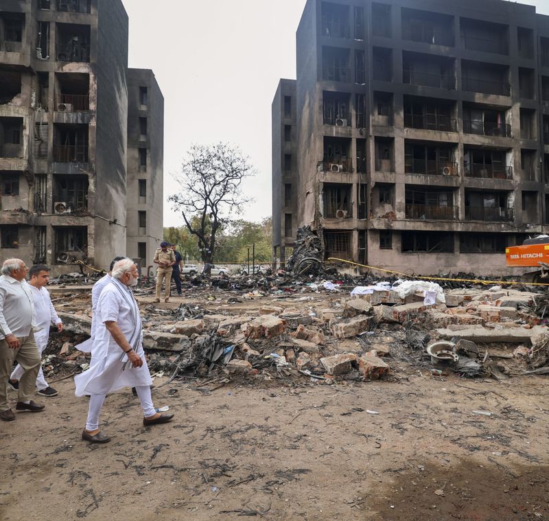 Prime Minister Narendra Modi, when he arrived the following morning, came with the customary phalanx of camerapersons. The shot that that took everyone’s breath away was that of Modi alone, looking up at the tail of the aircraft embedded in the hostel building. The image provoked more than a few comments on X, with one perceptive critic noting that while everything was collapsing and disintegrating, the one thing on track seems to the PM’s public relations machine.