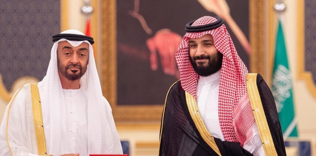 UAE crown prince Mohammed bin Zayed and Saudi Arabia's Crown Prince Mohammed bin Salman. Photo: BANDAR ALGALOUD/ROYAL SAUDI COURT/REUTERS