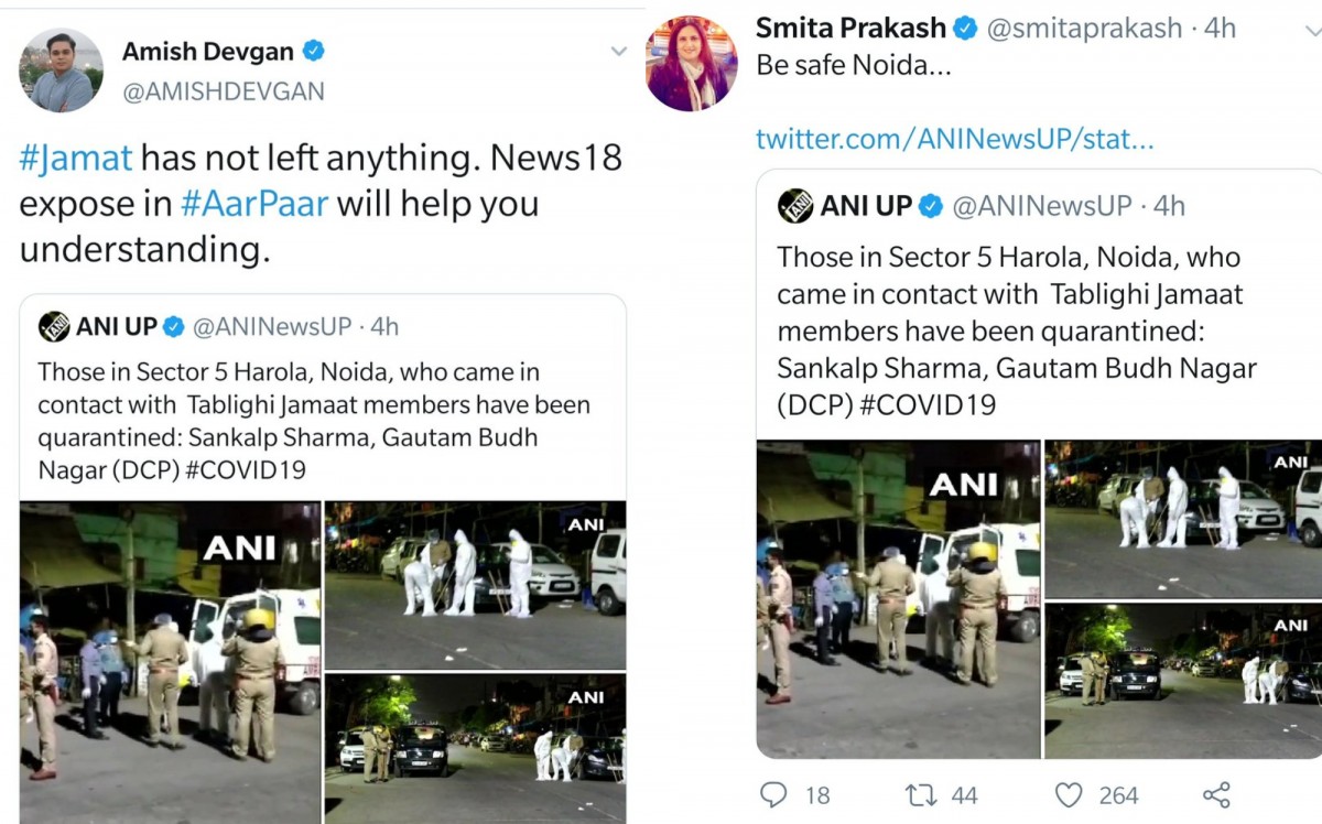 ANI’s news was amplified by Smita Prakash, Editor of ANI and Amish Devgan, Managing Editor of News18 Hindi.