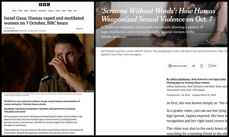 The story that came to occupy pride of place in Israel’s informational onslaught post-October 7, was evocatively titled, ‘Screams Without Words: How Hamas Weaponized Sexual Violence on Oct. 7’ (December 28). Written by Jeffrey Gettleman, a Pultizer Prize winner, and two Israeli colleagues, Anat Schwartz and Adam Sella, its main argument was evident in its headline: sexual violence as part of Hamas’s strategic offensive.