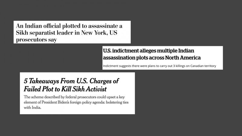 Canada's CBC noted that "[p]erhaps the most surprising allegation in the murder-for-hire indictment filed in New York state against Indian national Nikhil Gupta is a claim that there were plans to carry out three such killings on Canadian soil."