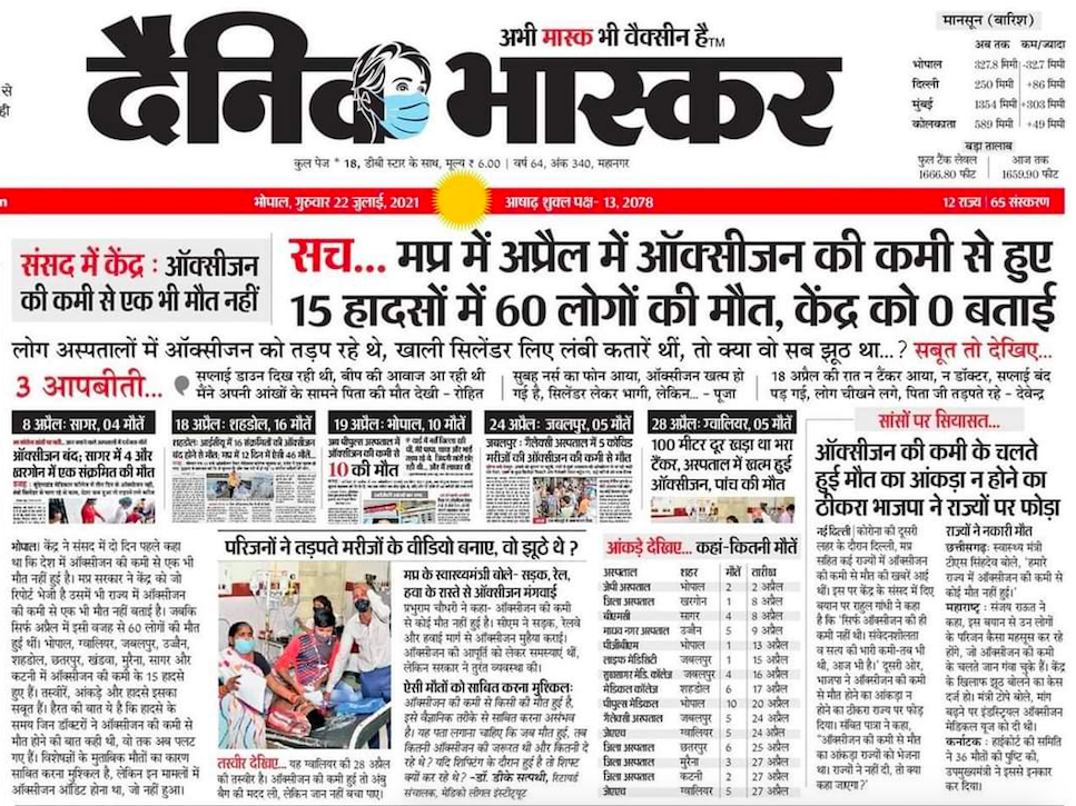 A report on Dainik Bhaskar's coverage on Newslaundry points out that the paper had been indefatigable in highlighting aspects of COVID-19 mismanagement that the governments at the Union and in states did not want known.