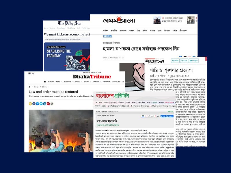Hours after these editorials were published on August 7, interim leader Muhammad Yunus issued a statement to the people of the country, urging for calm as well.