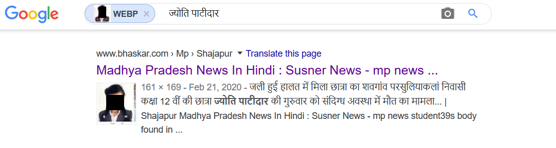 Alt News performed a reverse image search of the girl’s photograph on Google along with appropriate keywords and found a February 21 report by Dainik Bhaskar.