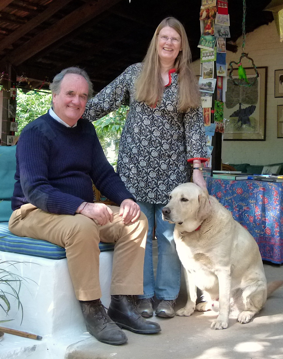 With his partner Gilly at Kipling Camp, Madhya Pradesh, for Christmas 2011 – and Kim, the resident labrador.