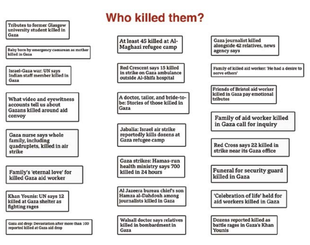 It illustrates how, despite Gaza enduring mass civilian casualties for many months, sympathetic articles with emotive, humanising or personal stories of Palestinians appeared only twice as often as those for Israelis.