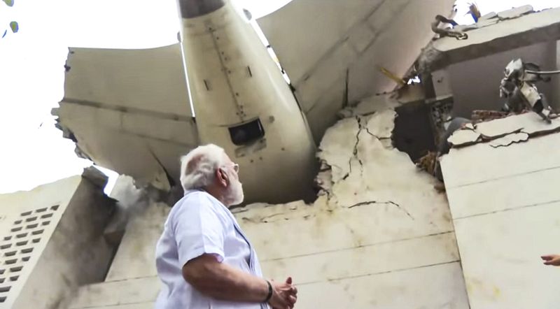 In this image via PMO, Prime Minister Narendra Modi visits the site of the Air India plane crash, in Ahmedabad, Friday, June 13, 2025. A London-bound Air India plane carrying 242 passengers crashed moments after taking off from the Ahmedabad airport on Thursday. (PMO via PTI Photo)