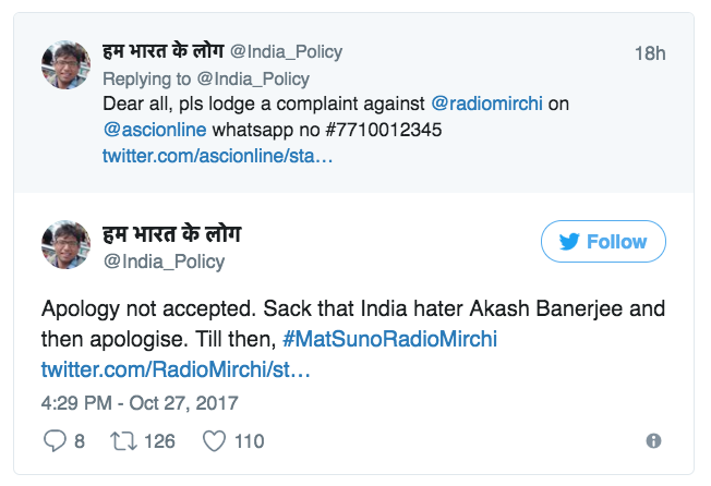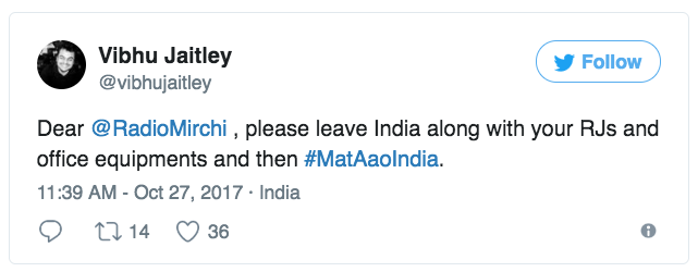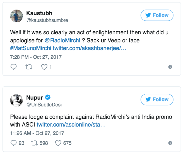 Soon after Akash Banerjee, the radio station's vice president and regional programming head, tweeted the promo onThursday night, right-wing and 'nationalist' Twitter handles started targeting him for spearheading an "anti-India campaign", lodged complaints with the information and broadcasting ministry and the Advertising Standards Council of India (ASCI) and demanded that the Times Group either sack Banerjee or be prepared for a boycott of the radio station.