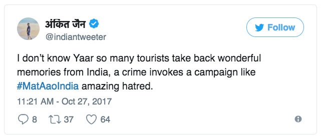 The campaign ad, which was clearly a satirical spin on the government's official tourism slogan of 'Incredible India', ends with a warning – "Coming to India will be injurious to your health" – that was clearly meant to shame the authorities in Uttar Pradesh and the Centre into taking their responsibility towards foreign guests more seriously: