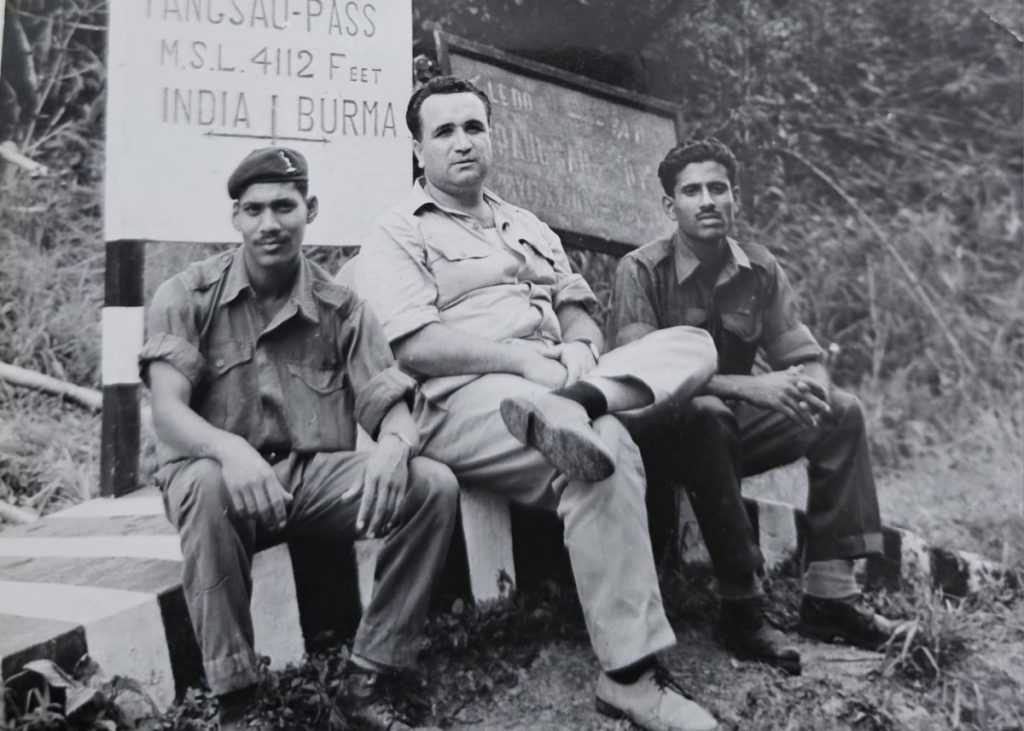 M.L Kotru flanked by two jawans at the India-Burma border. Photo: By arrangement.