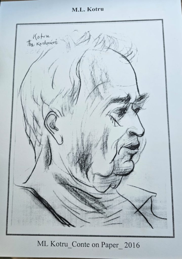 A sketch of M.L Kotru, presented to him on his 82 nd birthday by artist and friend Jatin Das. Photo: By arrangement.