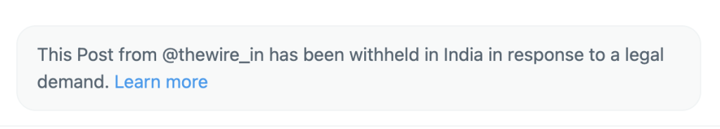 On February 10, the cartoon was blocked on X as well, with a message saying instead, "This Post from @thewire_in has been withheld in India in response to a legal demand."