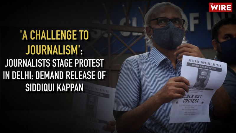 Journalists from several organisations on October 5 staged a protest outside the Press Club of India against the continued incarceration of journalist Siddique Kappan.