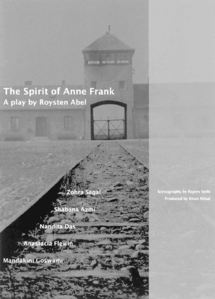 A cause of even greater friction with the government of Gujarat was the performance of The Spirit of Anne Frank, a play produced with the financial support and cooperation of the Dutch embassy. In early December 2002, I attended the première in a jam-packed theatre at the National School of Drama in Delhi. The play is an Indian production written by Roysten Abel and the programme booklet clearly depicts its subject matter: a railway line coming to an abrupt stop at the entrance to the Auschwitz concentration camp in Poland.